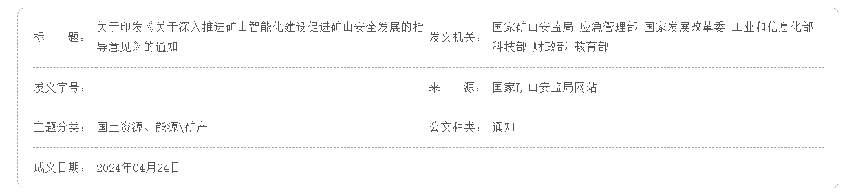 關于印發《關于深入推進礦山智能化建設促進礦山安全發展的指導意見》的通知