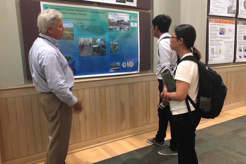 在訪問(wèn)美國(guó)地質(zhì)調(diào)查局濕地與水生研究中心期間,訪問(wèn)團(tuán)聽(tīng)取了該中心副主任Thomas Doyle研究員關(guān)于濱海濕地生態(tài)地質(zhì)調(diào)查與監(jiān)測(cè)方面的最新進(jìn)展和工作成果介紹。雙方圍繞海岸帶有機(jī)質(zhì)加積、預(yù)測(cè)模型建設(shè)、碳分解等系列工作進(jìn)行了交流討論,通過(guò)深度交流和學(xué)習(xí)借鑒,在進(jìn)一步學(xué)術(shù)交流、科研合作等方面取得了豐富的成果。