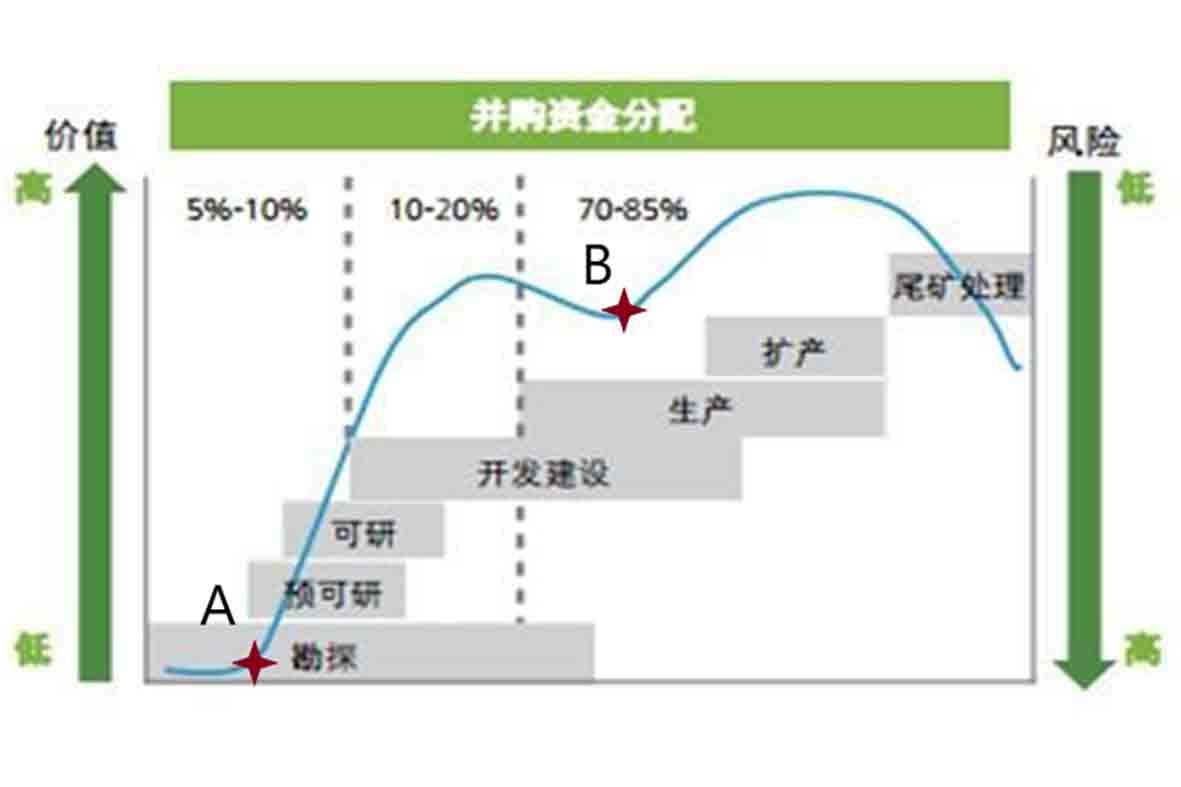 B點(diǎn):項(xiàng)目風(fēng)險(xiǎn)低升值中高,投資風(fēng)險(xiǎn)大。從項(xiàng)目層面來(lái)看,項(xiàng)目已經(jīng)有明確的儲(chǔ)量,經(jīng)濟(jì)技術(shù)可行,項(xiàng)目可見(jiàn)風(fēng)險(xiǎn)低。這時(shí),希望大手筆、大投入做大做強(qiáng)的中國(guó)國(guó)企,就進(jìn)入了B點(diǎn)。但是,一個(gè)項(xiàng)目到了在建階段,很完美的項(xiàng)目不會(huì)到市場(chǎng)上融資的。通常,很完美的項(xiàng)目國(guó)際礦業(yè)巨頭早已介入,資金充裕并不差錢(qián)。B點(diǎn)的項(xiàng)目,技術(shù)經(jīng)濟(jì)指標(biāo)又好,還在市場(chǎng)上有一定的暗疾。這時(shí),中國(guó)企業(yè)很容易掉進(jìn)坑里。