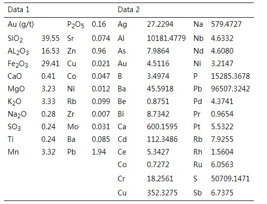 例如,從表1所列化驗數據大致推測樣品采集區域可能出露的巖石類型、賦存的經濟礦物、成礦因素有哪些和大致的成礦類型等信息。