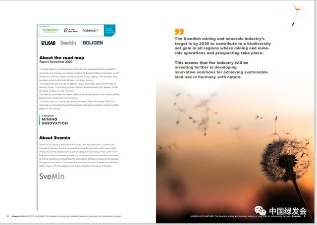 這份《采礦與自然:瑞典礦業(yè)和礦產(chǎn)產(chǎn)業(yè)生物多樣性凈收益的路線圖 》(MINING WITH NATURE:The Swedish mining and minerals industry’s road map for biodiversity net gain)的報告,23頁的篇幅。來源/Svemin