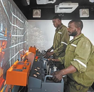 在贊比亞的中色非洲礦業公司內,當地員工通過數字仿真設備進行技能培訓