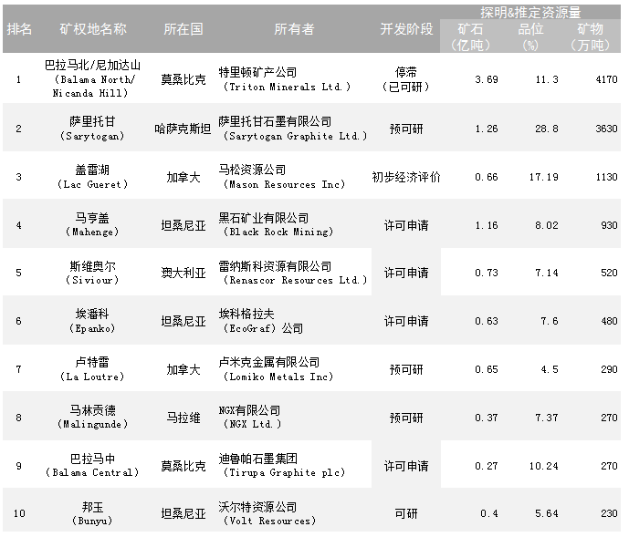 文章來源于:全球地質(zhì)礦產(chǎn)信息系統(tǒng),原文鏈接:全球十大石墨開發(fā)項(xiàng)目