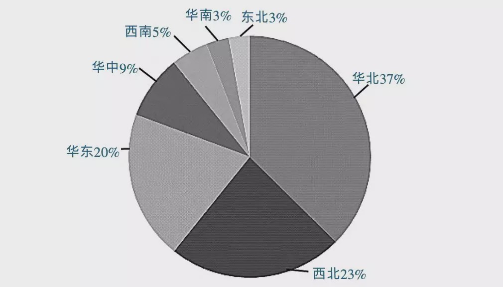 中國氯氣各區(qū)域產(chǎn)能分布占比圖