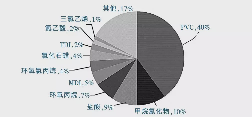 中國氯資源需求分布如何呢。目前,中國氯堿企業(yè)主要生產(chǎn)200余種氯產(chǎn)品,除占比最大的PVC外,還形成了漂白消毒劑、環(huán)氧化合物、甲烷氯化物、高分子氯化聚合物、光氣/異氰酸酯、氯代芳烴、氯乙烯等 20 多個系列200余種產(chǎn)品。加之其衍生產(chǎn)品,包括一級、二級、三級衍生產(chǎn)品及下游深加工產(chǎn)品,總品種約 1 300 種。作為氯資源最大的消耗產(chǎn)品,PVC占據(jù)了國內(nèi)氯資源下游40%的比例。PVC產(chǎn)品的產(chǎn)能規(guī)模及開工率,對國內(nèi)氯資源的平衡消化起到了十分重要的影響。但PVC行業(yè)對資源和能源的依賴性較強,適合中國西北地區(qū)上下游一體化的生產(chǎn)模式,國內(nèi)逐漸形成了以 PVC 為主體,多元氯產(chǎn)品并行的發(fā)展格局。