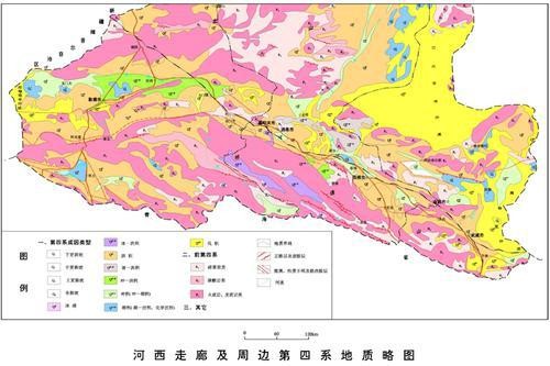 關(guān)于河西走廊的地質(zhì)成因有兩種解釋:槽臺學(xué)說認為,河西走廊屬祁連褶皺系走廊過渡帶;板塊構(gòu)造學(xué)說認為,屬塔里木-中朝板塊陸緣活動帶。河西走廊四周受區(qū)域性深大斷裂的限制,北部為寬灘山-合黎山-龍首山斷裂帶,南為祁連山北緣斷裂帶,西為阿爾金走滑斷裂帶,東為鄂爾多斯西緣斷裂帶。從地貌形態(tài)上看,河西走廊夾峙在祁連山、阿爾金山與馬鬃山、合黎山、龍首山等山脈之間,東起烏鞘嶺,西至甘新交界的星星峽,呈東西走向展布,長約1000公里、寬約10公里至100余公里的狹長地帶。