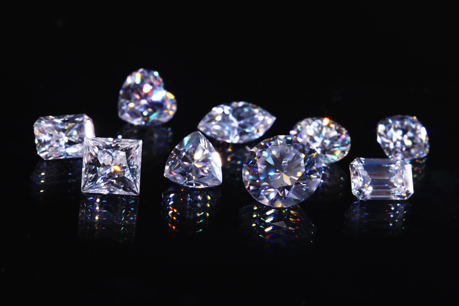 雖然外貌足以以假亂真,但鑒別莫桑石的方法也不少。最簡單也最直觀的就是在10倍放大鏡下觀察,莫桑石有刻面棱重影現象和強火彩特征。除此之外,它的相對密度值較低,雙折射率和色散較高,內部還可能存在長針狀包裹體,這些也是莫桑石與天然鉆石的不同之處。