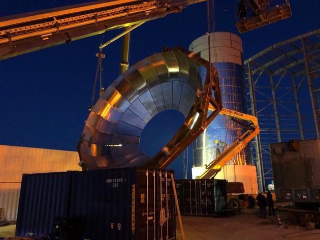 馬斯克發文稱:“對SpaceX團隊取得的進展感到非常自豪!”從起公布的照片可以看到一個巨大的圓形艙壁,據悉,這個艙壁的直徑大概有30英尺(9米)。