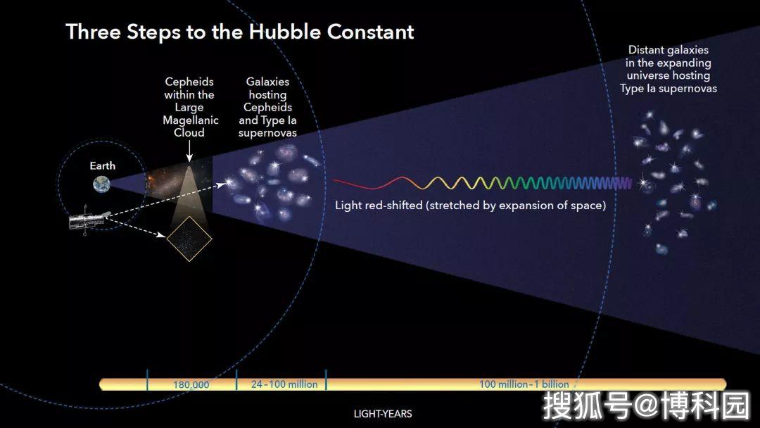 哈勃發(fā)現(xiàn),在遙遠(yuǎn)的星系中,紅移隨距離呈線性增加,這表明宇宙不是靜止的。它在所有地方同時(shí)膨脹。據(jù)美國(guó)宇航局稱,哈勃能夠計(jì)算出膨脹的速度,這一數(shù)字被稱為哈勃常數(shù)。正是這一發(fā)現(xiàn)使科學(xué)家們能夠推斷出宇宙曾經(jīng)被壓縮成一個(gè)小點(diǎn),即宇宙膨脹的第一個(gè)時(shí)刻為大爆炸。