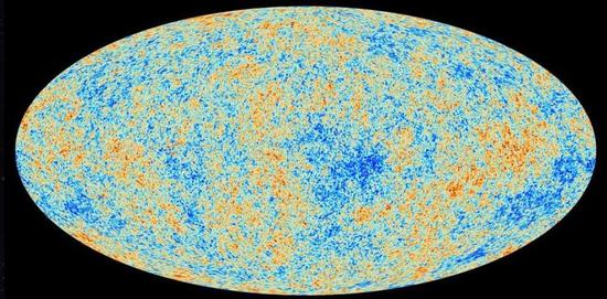 上圖中藍(lán)色可能是溫度低一些的,橙色的溫度高一些,看起來(lái)毫無(wú)規(guī)律,但正是這毫無(wú)規(guī)律的天圖,里面蘊(yùn)含著豐富的宇宙學(xué)信息。