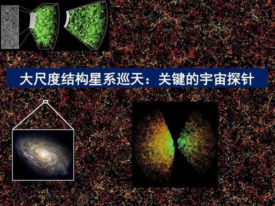 隨著我們觀測(cè)手段、觀測(cè)能力的提升,我們現(xiàn)在用的是SDSS 2.5米口徑的望遠(yuǎn)鏡,已經(jīng)探測(cè)了一百萬(wàn)條星系的光譜,但是遠(yuǎn)遠(yuǎn)不夠,今年下半年開(kāi)始DESI的合作項(xiàng)目,將基于一架更大的望遠(yuǎn)鏡,要探測(cè)兩千萬(wàn)條光譜。我們熟知的FAST射電望遠(yuǎn)鏡,口徑500米,也會(huì)在非常高的精度上給我們提供線索。