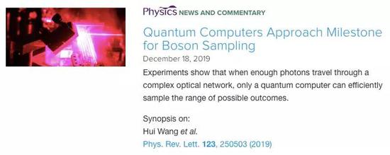 美國物理學會Physics網站以“玻色取樣量子計算逼近里程碑”為題對該工作做了精選報道,網站評價認為,這個實驗已經接近超越傳統計算機,意味著量子計算領域的一個里程碑。