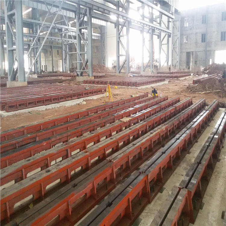 二.鑄鐵地梁安裝后,要任意1m長度內(nèi),水平偏差度不大于1mm,全長不大于2mm,軌道這間對應(yīng)點(diǎn)的水平偏差不大于1mm,每兩條軌道之間的平行度偏差小于2mm。