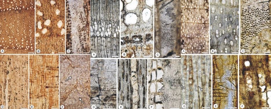 新生代被子植物木化石代表:殼斗科木化石、楝科木化石、千屈菜科木化石