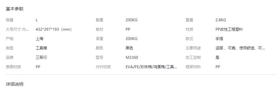 防護箱材質 改良工程塑料PP 插片槽 有 海綿材質 EVA/PU/XPE/定制隔袋 被帶孔/鎖扣孔 有 外尺寸 464*358*208mm 密封圈 "O"型橡膠密封圈,防水防塵 內尺寸 432*297*193mm 標簽 有;可自定義文字 內高 48+145mm 箱軸 長條鉸鏈式 箱重 2.8公斤 證書 ISO9001;美軍標準 顏色 黑色/軍綠色/黃色 耐溫 -40°C ~ 90°C 拉桿 手提 承重 80-120KG三軍行? M系列-注塑中小型安全防護箱 級別IP67 型號 外尺寸(mm) 內尺寸(mm) 蓋/箱深度(mm) 顏色 凈重(千克) 拉桿 腳輪(個) M2100 395*299*148 334*237*132 32+100 黑/黃/綠 1.78 無 無 M2200 413*328*168 381*267*152 48+104 黑/黃 2.3 無 無 M2360 464*358*208 432*297*193 48+145 黑/黃 2.86 無 無 M2400 493*395*185 462*334*170 48+122 黑/黃 2.916 無 無 M2500 587*358*221 525*297*192 48+144 黑/黃 4.95 有 2 M2608 570*418*228 508*356*220 48+172 黑/綠 4 無 無 M2610 570*418*285 508*356*254 48+206 黑 4.1 無 無 M2620 570*418*285 508*356*254 48+206 黑/綠 5.2 有 2 M2720 624*498*285 563*437*254 48+206 黑 7.5 有 2 M2750 624*498*353 563*437*323 48+275 黑 8 有 2 M2950 802*522*298 741*461*267 78*189 黑 8.9 有 2 RU系列滾塑移動減震機架箱 防護級別IP65 型號 外尺寸 19"機架安裝尺寸 蓋/箱深度(mm) 減震器 輪子 拉桿 顏色 RU040 760*621*364 mm 181*483*450 mm 100+560 8/可不帶 2/4 4 綠 RU060 860*592*446 mm 270.5*483*600 mm 90+680 8/可不帶 2/4 4 綠 RU080 860*592*535 mm 359.5*483*600 mm 90+680 8/可不帶 2/4 4 綠 RU110 850*621*675 mm 493*483*550 mm 100+650 8/可不帶 2/4 4 綠 RS系列滾塑箱空投箱 型號 外尺寸(mm) 內尺寸(mm) 凈重(千克) 體積(L) 腳輪 顏色 防護級別 RS820 800*530*380 700*445*350 15 100 有 綠 IP65 RS830 800*600*560 730*530*450 18 170 無 綠 IP65 RS860 961*697*398 871*615*355 20 190 有 綠 IP65 RS870 1100*530*360 1020*450*340 18 150 有 綠 IP65 RS880A 1200*800*620 1100*730*600 33 480 無 綠 IP65 RS880B 1200*800*700 1100*730*680 37 550 無 綠 IP65 RS890 2120*1070*625 2000*960*600 65 1150 有 綠 IP65