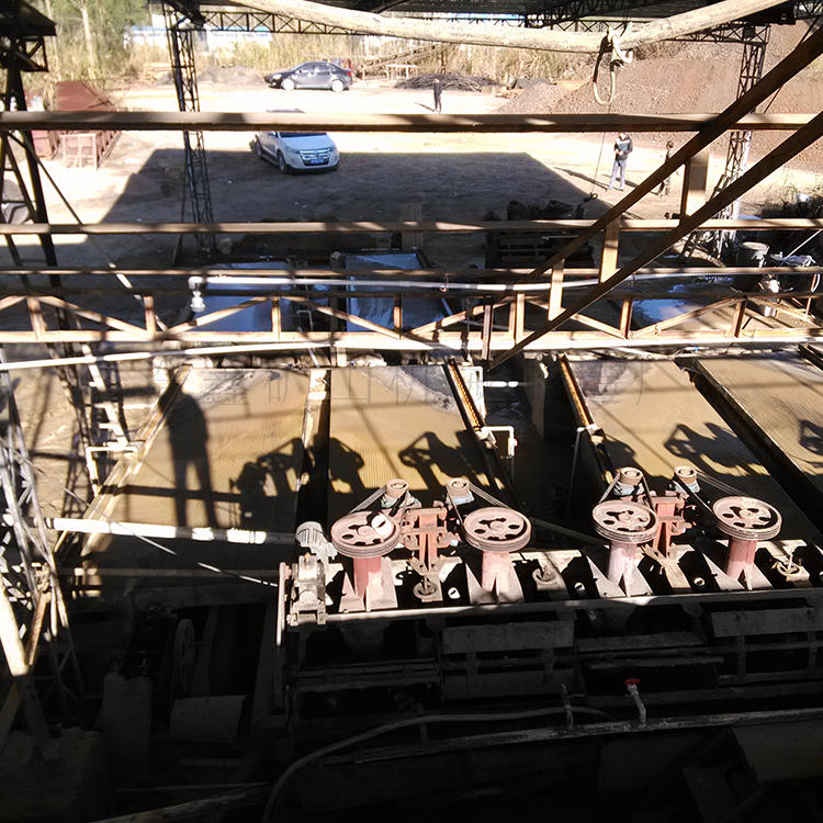 選礦搖床,是分選細粒礦石的常用設(shè)備。通常是由床面、機架和傳動機構(gòu)三大部分組成。除此之外還有沖水槽,給礦槽,機座等,整個床面由機架支撐或吊起,機架上裝有調(diào)坡裝置。