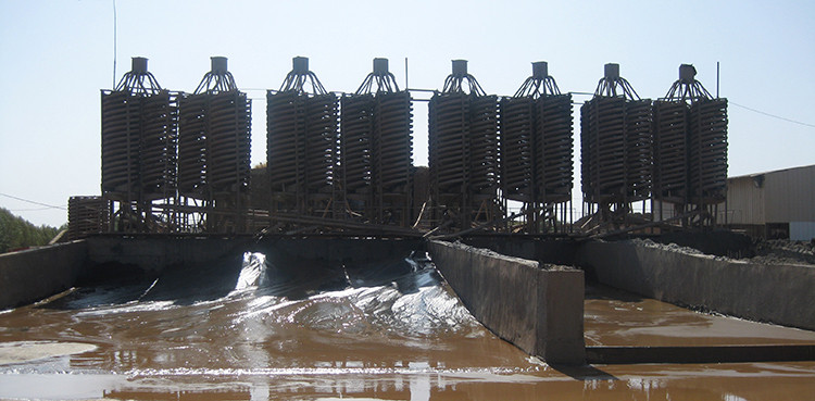 一般鉻礦選廠的工藝為原礦碎碎、磨礦、螺旋溜槽精選、螺旋溜槽掃選、搖床精選。還有精礦脫水,尾礦脫水、回收利用。