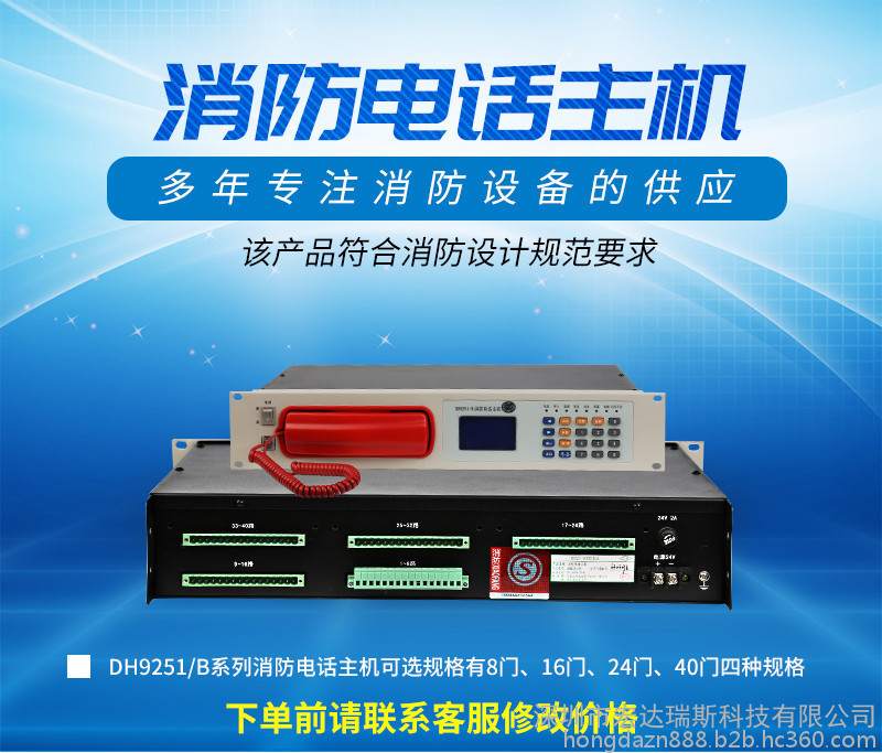 9)根據所接回路數量,本公司的DH9251/B系列消防電話主機可選規格有8門、16門、24門、40門四種規格
