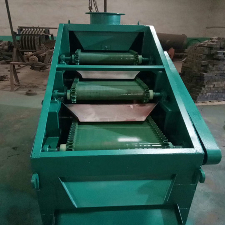 磁輥由傳動軸、封頭板、隔磁膠板、磁環等部件組成,磁輥結構簡單,剛性好,幾乎沒有損壞可能,使用壽命相當于永磁磁鋼壽命,十分耐用。磁輥為全磁系列,在干選機中配合從動輥進行皮帶式脫礦,在水選中配合脫礦刮板或脫礦毛刷卸礦,輥的全磁設計使礦物幾乎直接與磁源接觸,加之皮帶承載性能,使輥在礦選中具有很寬的粒度范圍。環形磁鋼具備強磁性能,直徑100mm、150mm、200mm、輥磁 磁場強度10000GS-15000GS。