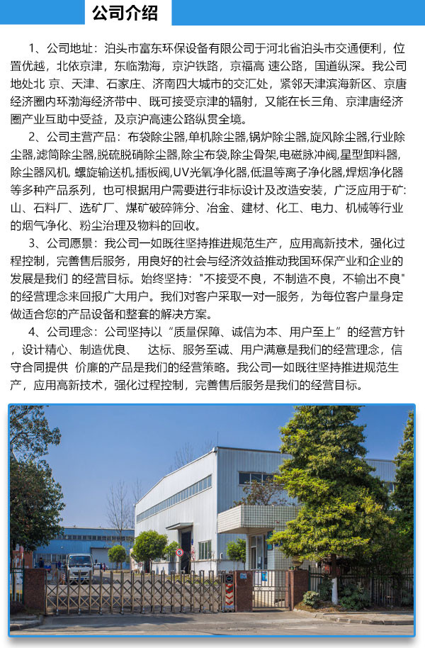 ⑸采用玻璃纖維、聚四氟乙烯、P84等耐高溫濾料時,可在200℃以上的高溫條件下運行。